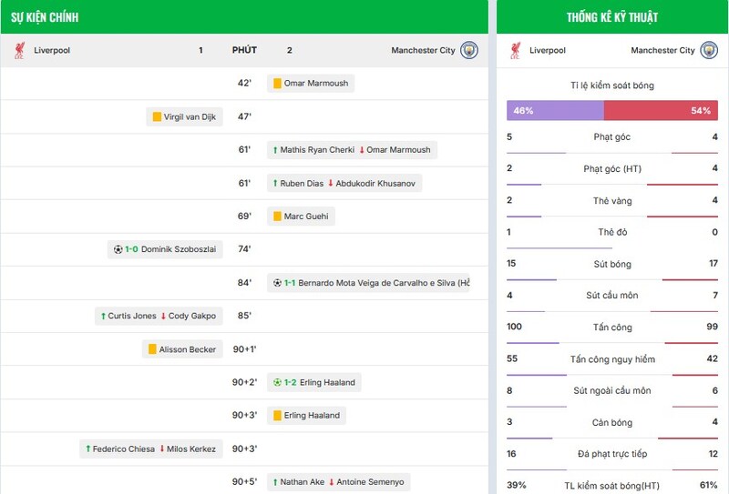Điều tôi thích ở Bóng Đá INFO là cách họ trình bày kết quả trận đấu rất “có hồn”. Không đơn thuần ghi 2–1 hay 0–0, mà còn kèm theo hàng loạt chỉ số: số cú sút, phạt góc, thẻ phạt, kiểm soát bóng, diễn biến bàn thắng theo từng phút.